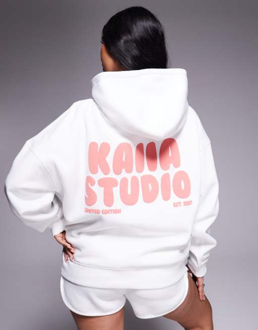 Kaiia – Vit och röd huvtröja i oversize med puffig logga baktill i bomullsrikt tyg, del av set, exklusivt hos ASOS