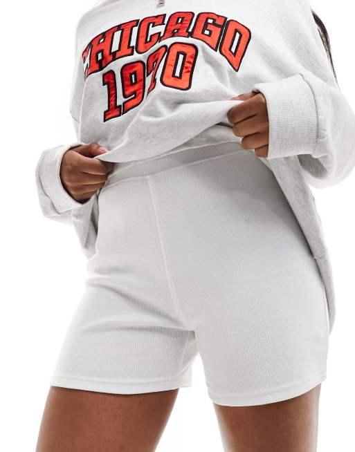 Kaiia – Vita, ribbade leggingsshorts i bomullsrikt tyg, exklusivt hos ASOS