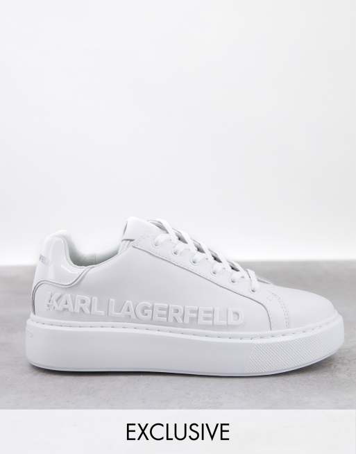 Karl Lagerfeld – Vita exklusiva sneakers med platåsula med upphöjd logga