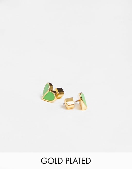 Kate Spade – Guldpläterade, små, hjärtformade stiftörhängen med gröna detaljer