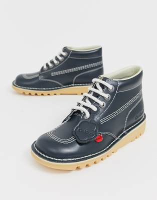 Kickers – Kick Hi Core – Mörkblå, platta hi top-boots i läder