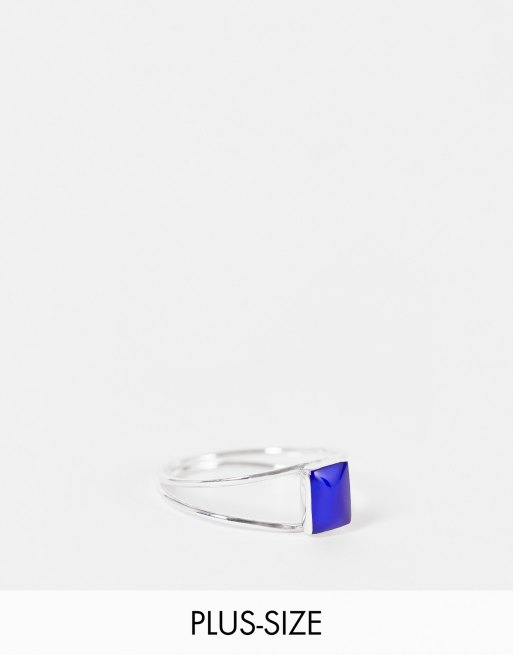 Kingsley Ryan Curve – Ring i sterlingsilver med dubbla band och blå sten