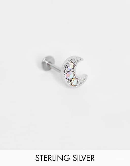 Kingsley Ryan – Silverfärgat piercingörhänge med stift i måndesign med stenar