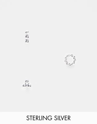 Kingsley Ryan – Stiftörhängen i sterlingsilver med pärlor, 3-pack