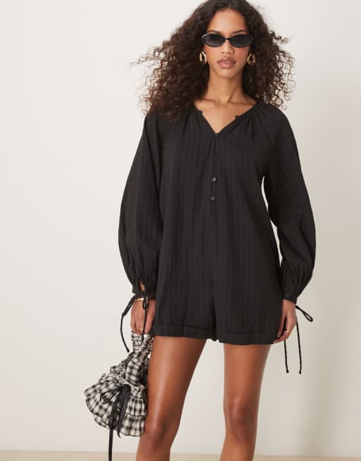 Kiss The Sky – Svart, kort playsuit med långa ärmar