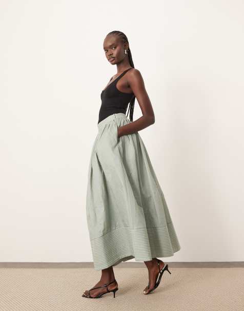 ASOS DESIGN – Kakigrön, panelsydd maxikjol med snörning och broderie anglaise