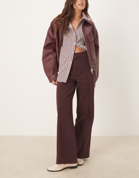 Miss Selfridge – Plommonfärgade, skulpterande byxor med vida ben