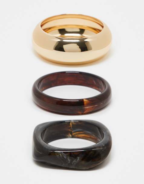ASOS DESIGN – Bruna och guldfärgade, stela armband ombréfärgad harts och stål i 4-pack
