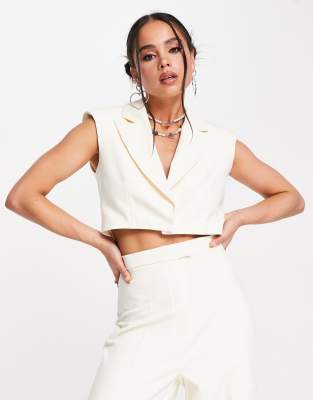 Kyo The Brand – Krämvit, ärmlös, kort kavaj med boxig passform, del av set