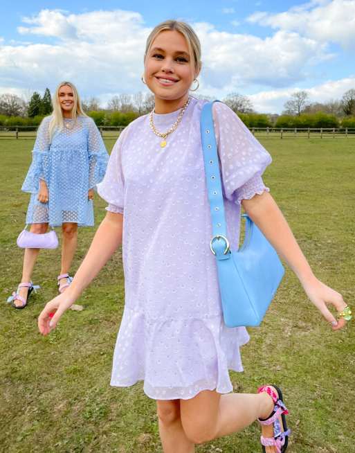 Labelrail x Olivia & Alice – Kort smockklänning i prickigt dobbymaterial med peplumfåll