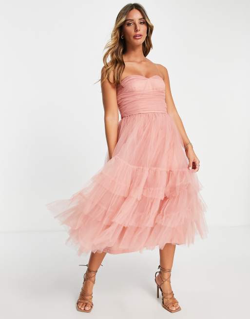 Lace & Beads – Brudtärnor – Puderrosa, panelsydd midaxiklänning med rynkning