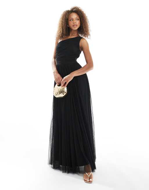 Lace & Beads – Brudtärnor – Svart, enaxlad maxiklänning