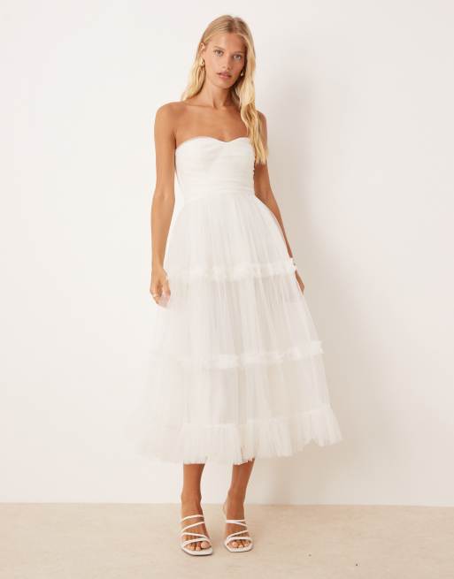 Lace & Beads – Gräddvit midaxiklänning med bandeau och volanger