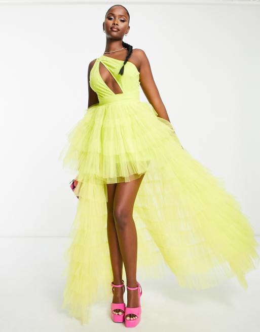 Lace & Beads – Limegrön, utsmyckad maxiklänning med utskurna detaljer i tyll, endast hos ASOS