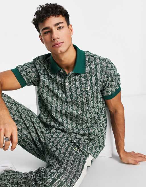 Lacoste – Grön pikétröja med loggmönster