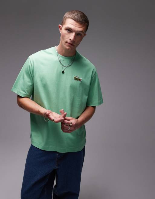 Lacoste – Grön t-shirt i oversize med stor, broderad logga