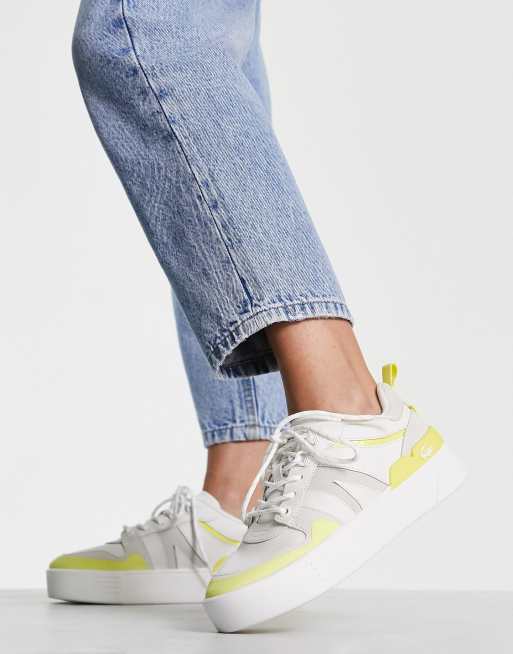Lacoste – L002 – Vitgula panelsydda sneakers med platåsula