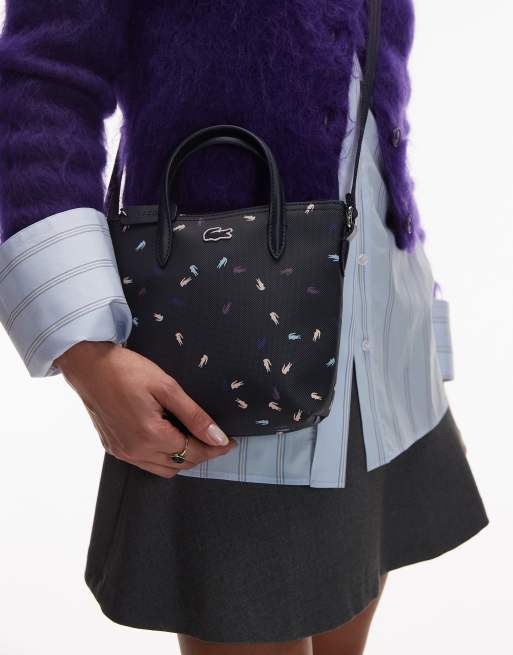 Lacoste – Marinblå axelremsväska med litet krokodilmönster