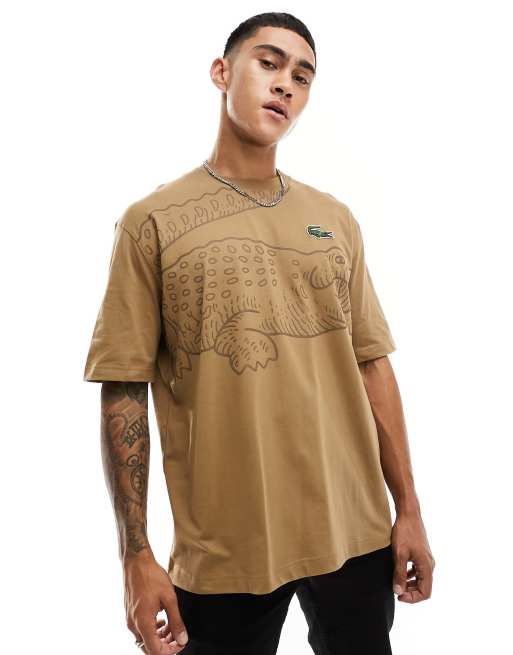 Lacoste – Mörkbeige, ledig t-shirt med stor krokodillogga