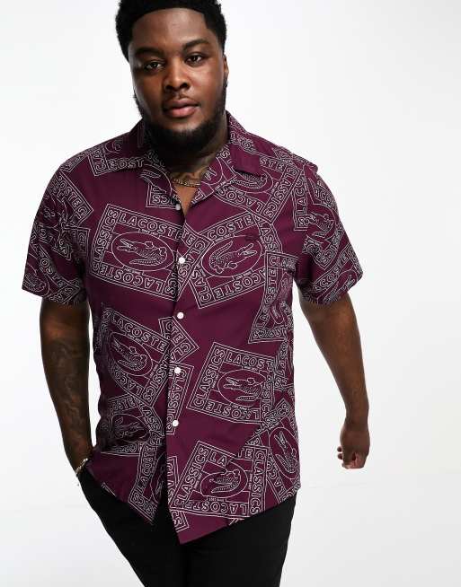 Lacoste Plus – Vinröd mönstrad skjorta med korta ärmar