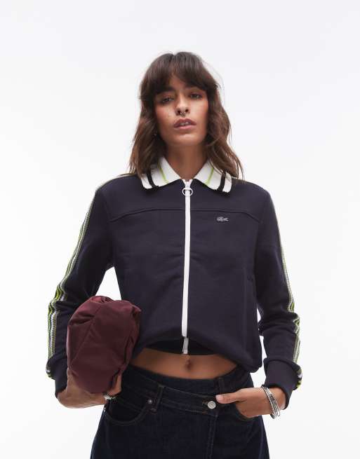 Lacoste – Svart träningsjacka med ränder och dragkedja