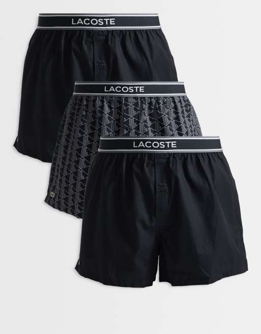 Lacoste – Svarta, vävda boxershorts med monogram, 3-pack