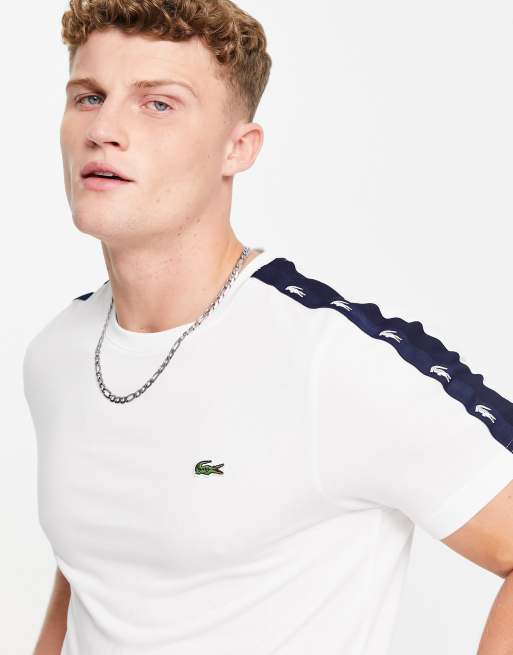 Lacoste – Vit t-shirt med tejpade detaljer på axlarna