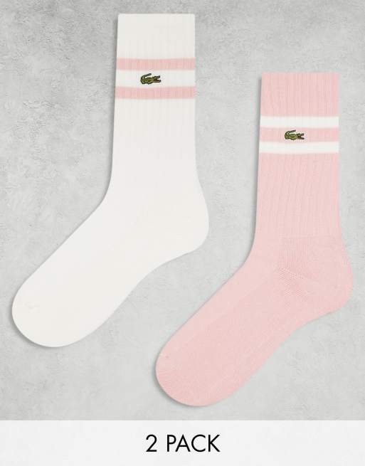 Lacoste – Vita och rosa ankelstrumpor med kantrand, 2-pack