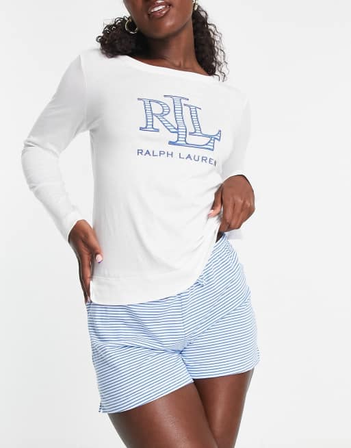 Lauren by Ralph Lauren – Blårandig pyjamas med boxershorts och logga