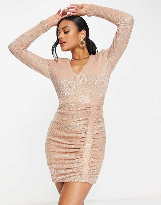 Lavish Alice – Roséguldfärgad, plisserad miniklänning med små paljetter