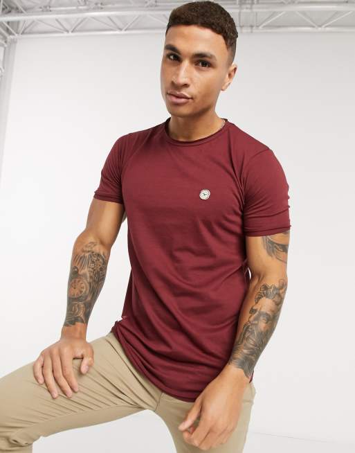 Le Breve – Lång vinröd t-shirt med råskurna kanter