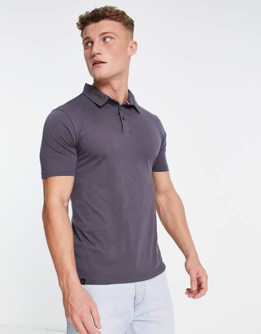 Le Breve – Mörkgrå pikétröja i muscle fit
