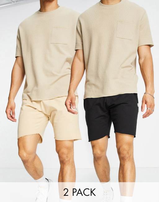 Le Breve – Svarta och stenfärgade jersey-shorts med rå nederkant, pack om 2