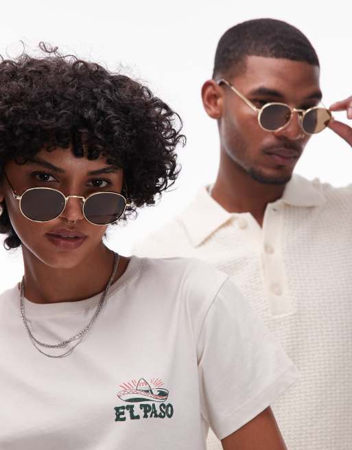 Le Specs – Lost Legacy – Guldfärgade, bruna, runda solglasögon i metall