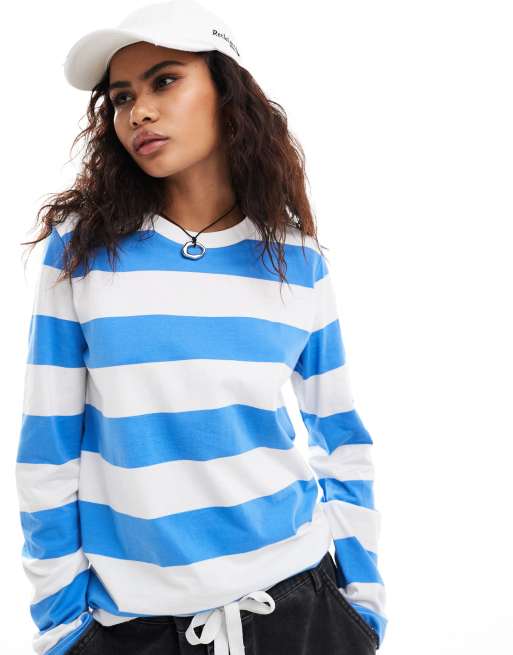 Lee Jeans – Beige- och blårandig t-shirt med långa ärmar