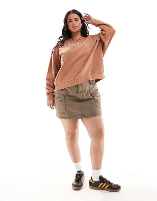 Lee Plus – Brun sweatshirt med rund halsringning och collegelogga