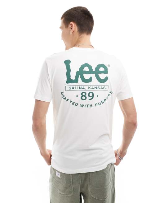 Lee – Gräddvit t-shirt med vågig logga och tryck baktill