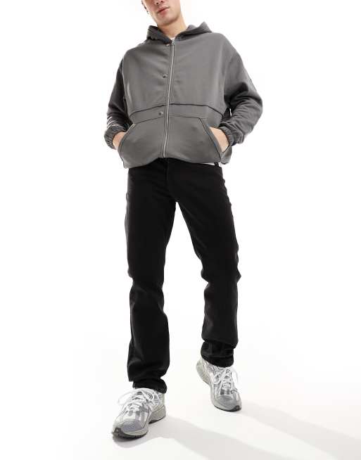 Lee – West – Svarta, tvättade, avslappnade jeans med rak passform