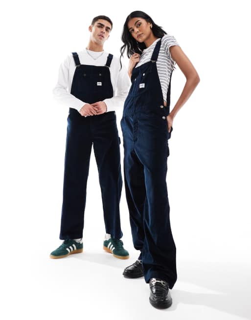 Lee – Workwear – Marinblå, avslappnade hängselbyxor av manchester i unisex-modell