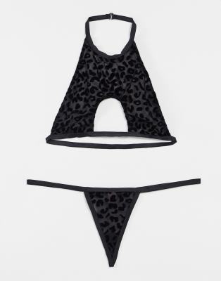 Leg Avenue – Svart underklädesset i leopardmönster, detalj under bysten