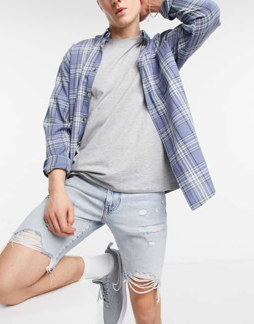 Levi's 412 – Ljusblå jeansshorts i smal passform med slitna detaljer
