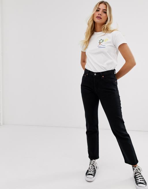 Levi's – 501 – Svarta ankellånga jeans med raka ben och hög midja