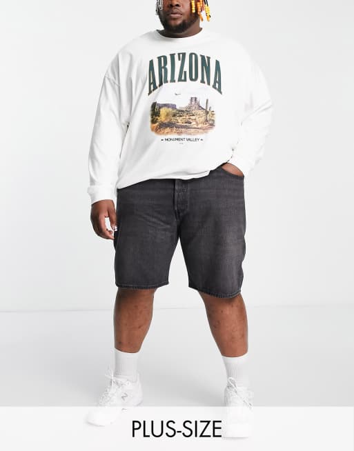 Levi's – Big & Tall 501 – Svarta jeansshorts med sydda kanter