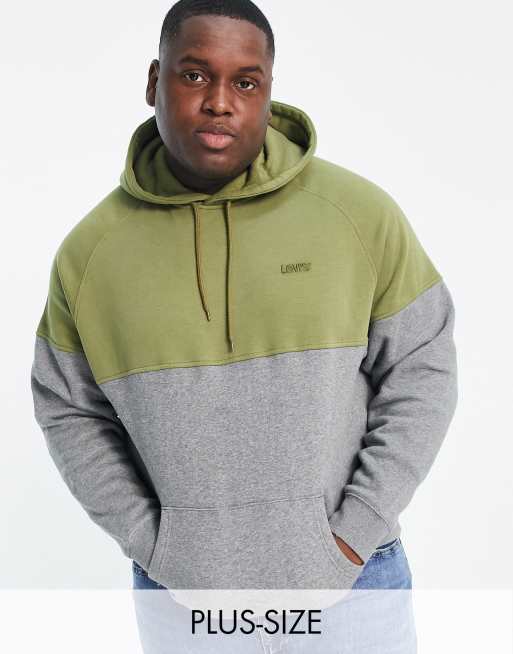 Levi's – Big & Tall – Olivgrön/grå, blockfärgad huvtröja i collegestil