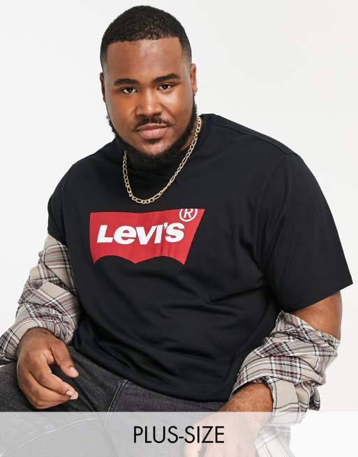 Levi's Big & Tall – Svart t-shirt med stor, bågformad logga