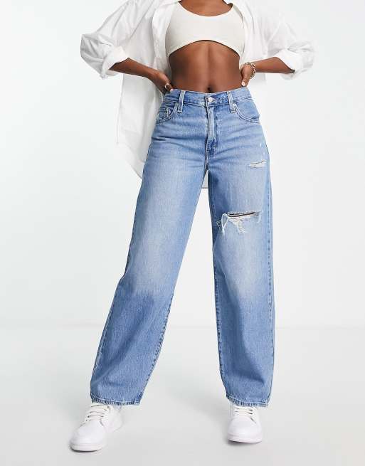 Levi's – Blå, baggy, dad jeans i mellanljus tvätt