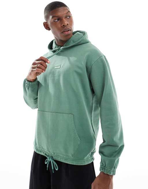 Levi's – Grön avslappnad huvtröja med centrerad liten fliklogga