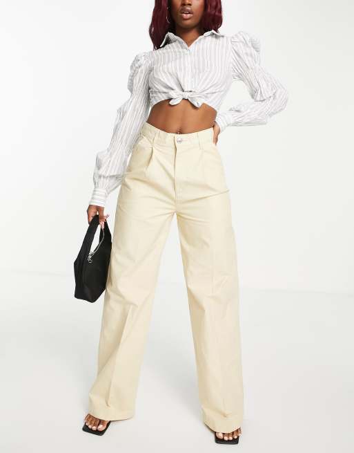 Levi's – Ljusbeige byxor med veck och vida ben