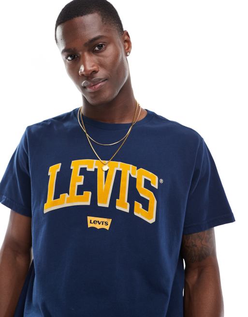 Levi's – Marinblå, avslappnad t-shirt med collegelogga