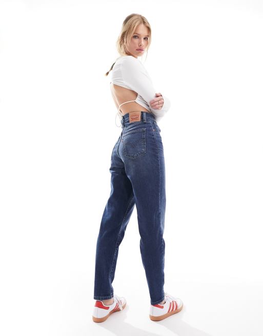 Levi's – Marinblå, tvättade mom jeans med hög midja